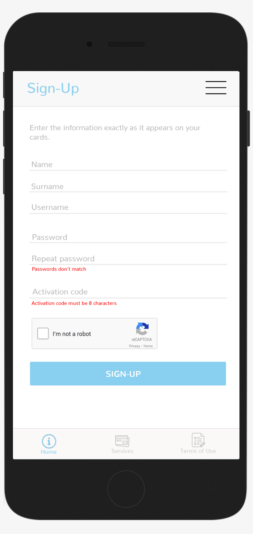 Registration is finished with the activation of Google Captcha screen, for the security purposes. If application is not used for a while Google Captcha screen has to be activated again.